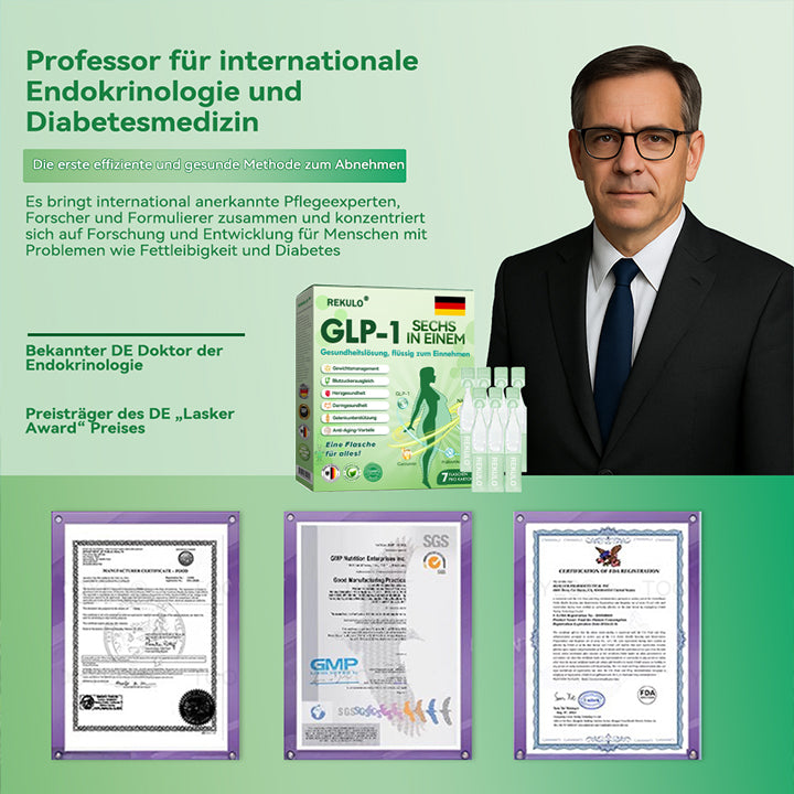 Als Endokrinologe engagiere ich mich, natürliche und effektive Lösungen für die Stoffwechselgesundheit und Gewichtskontrolle zu finden. Nach umfangreichen Forschungen und klinischen Studien mit mehr als 5000 Teilnehmern habe ich entdeckt, dass die orale Flüssigkeitslösung REKULO® 6-in-1 Flüssige Nahrungsergänzung außergewöhnliche Vorteile für den Stoffwechsel, die Appetitkontrolle und das allgemeine Wohlbefinden bietet. Diese Formel fördert auf natürliche Weise die Aktivierung von GLP-1, was hilft, die Blutzuckerwerte zu regulieren, Heißhunger zu reduzieren und die Fettverbrennung zu verbessern. Ihre kraftvolle Mischung aus Apfelessig, Kurkuma und anderen natürlichen Inhaltsstoffen hilft nicht nur, gesundes Gewicht zu verlieren, sondern fördert auch die Verdauungsgesundheit, stärkt das Immunsystem und unterstützt das langfristige metabolische Gleichgewicht. Mit der Unterstützung moderner medizinischer Forschung ist die orale Flüssigkeitslösung REKULO® 6-in-1 Flüssige Nahrungsergänzung eine zuverlässige und wissenschaftlich fundierte Option für alle, die einen natürlichen und effektiven Ansatz für die Gewichtskontrolle und die allgemeine Gesundheit suchen.